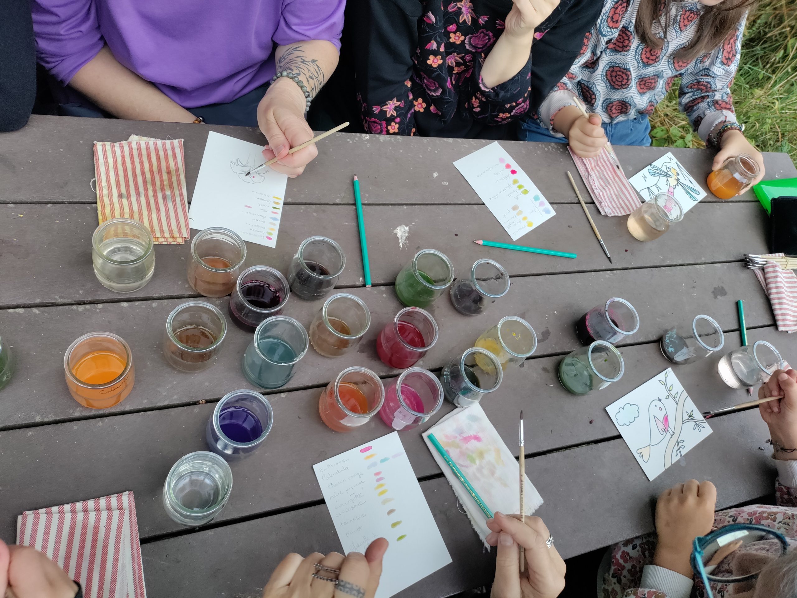 Passeur de Nature a proposé une expérience originale dans l’espace naturel des Baux de Caulne. Au sons de l’eau et des oiseaux nous avons proposer aux participants de découvrir et fabriquer des peintures végétales.